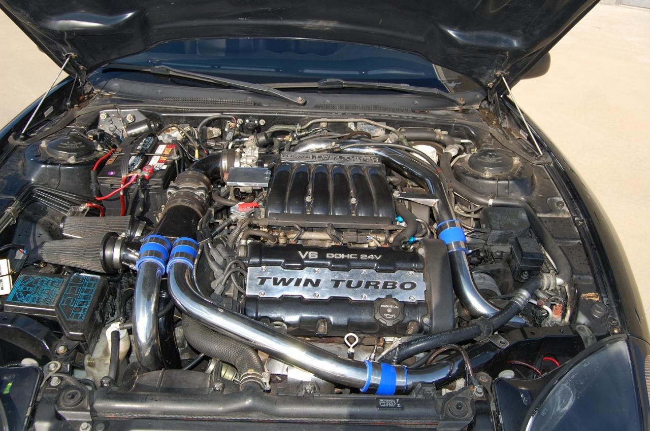 | '''Body:''' *GTO power folding mirrors http://www.youtube.com/watch?v=uVS7zL9M63U *Night shade (wing brake light, reverse lights, taillights) *8k HID's *2nd gen RT body panels (door caps, side skirts, rear bumper) *15% tint *99 Front End(glass 94 Stealth headlights, 99 blinkers) *JDMEGO license plate bolts *JDMEGO License plate frame *tinted license plate cover *96 Stealth wing *rear wiper mod '''Suspension and Wheels:''' *3sx SS brake lines (Blue) *Eibach lowering springs w/ ECS *Volk TE-37 Rims *Rays lightweight lugs *Nexen 245/40/18 N3000 tires *Black painted calipers with Graphite Stealth decal *Cusco Rear Strut bar *Cianci 3-point front strut bar *3sx AWS delete '''Electronics:''' *Valentine 1 Radar detector (hardwired) *AEM UEGO (wideband) *AEM Boost Gauge *Apexi AVC-R Boost controller *Apexi S-AFC: II *Prosprot Gauges (water temp, Fuel press, Oil press) '''Interior:''' *2nd gen FULL black interior *Katzkin upholstry front seats(dark charcoal) *Anodized black aluminum dash vents (Smokin VR-4) *Shift boot (black) *3rd gen dome light/homelink *Evo X shift knob '''Engine:''' *EGR block off *Vac Reduction *3SX Hotwire Kit *STM clutch line *"ONE" Down Pipe (front precat delete) *custom 3" catback exhaust http://www.youtube.com/watch?v=LC4poF48Sdo *3" inlet/3.5" dual outlet exhaust tips http://www.youtube.com/watch?v=EgKONBTj0pk *HKS SSQV limited Black BOV *Seattle short throw shifter (1.25" shorter than normal short shifter) *Seattle Polly motor mounts(all 4) *gutted rear precat *CNC shifter bushing kits *Slotted & cross drilled rotors *1 piece CFDS *120 tuneup *Denso 255 fuel pump *Dejon Blow-Through setup w/ Gm maf and MAF-T *560cc injectors (EVO VII) *Oohnoo's FMIC *DNP Pipe Kit *Powder Coated (black) Plenum and Valve cover by Maximal *3sx Twin Turbo spark plug cover *Maximal T-Case bracket *MSD street fire spark plug wires *NGK Copper spark plugs *Fidanza flywheel L/W *Spec stage 3 clutch *99 lifters *HKS Twin Power DLI *Clear Cam gear covers *custom SX fuel line kit(FPR, Filter, rails) '''Audio:''' *12" corner box (Smokin VR-4) *JL Audio 500/1 amp *Kicker 12 CVR *Pioneer 6x9 rear *JL Audio 5x5 front *E-Dead sound deadening throughout(Trunk to lower back seats and doors) '''Waiting on install:''' *evil eye stock hood *Robo-mod headlights and add Blue angels |