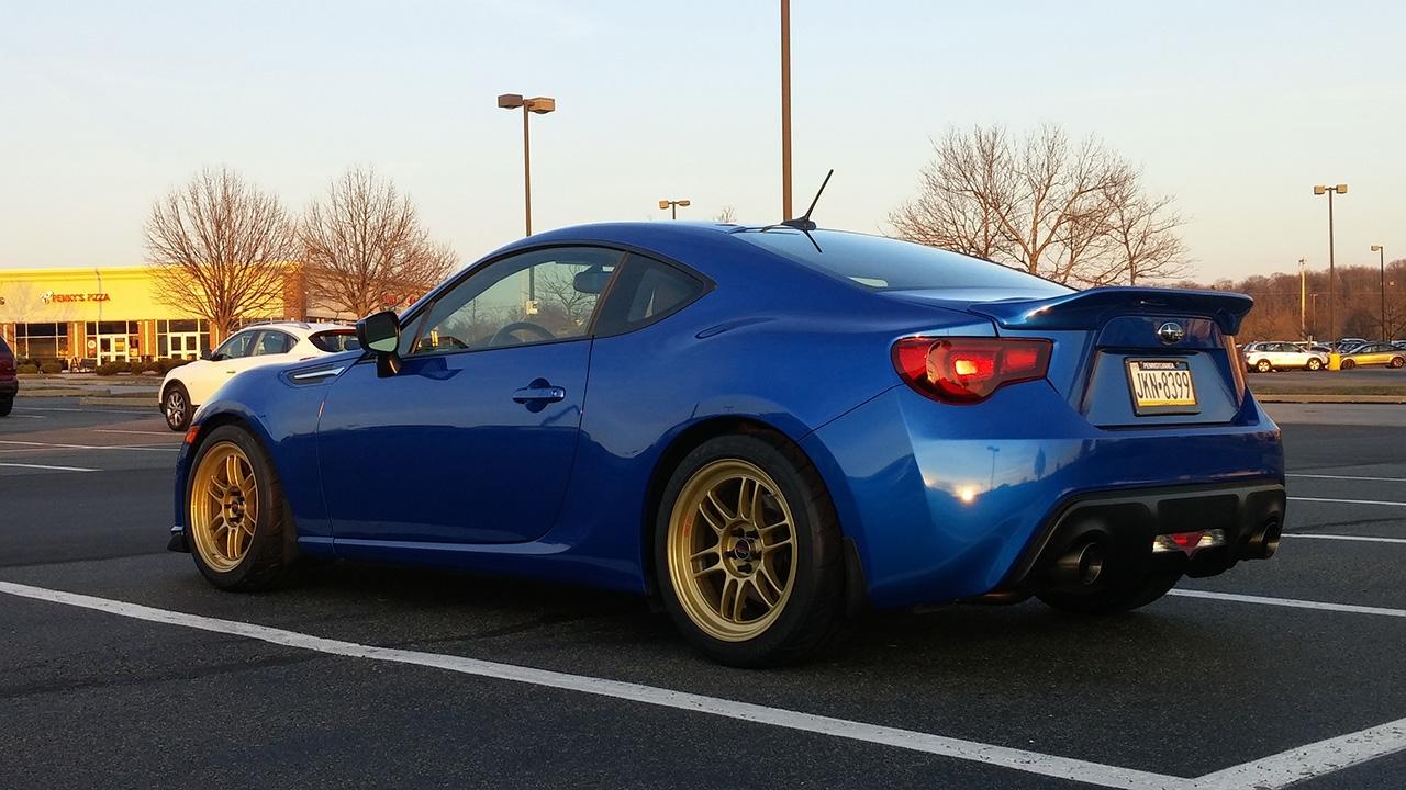 | I picked up a BRZ to daily drive while modding my old GTI and as you can see that didn't exactly last for very long. My mod-list is as follows: - Cosworth Panel filter - Wheelhaus CF third brake light - JDL Auto Design UEL header - JDL Overpipe - JDL "Ultra Quiet" frontpipe. Catted & Resonated. - Open Flash Tablet for loading tunes - STI/Group-N engine & trans mounts - SRP throttle pedal - TRD clone spoiler - Whiteline diff bushing inserts (rear only, the outrigger bushings make too much diff whine on decel) - Perrin 2.5" Resonated Catback - Carbotech XP10/XP8 pads (for track days, way too dusty for prolonged street use) - Maximal Performance Oil Cooler - Ohlins Road & Track coilovers - TOM'S DOT red taillights - SPC rear camber arms - Whiteline subframe bushing inserts - Enkei RPF1 17x9 ET35 in Gold - STI lip (polyurethane clone) - OEM mudflaps - GT3 brake air guides I've had a lot of fun autocrossing the BRZ and taking it to the track. Tons of fun and I'm looking forward to 2016 with all of my new additions! |