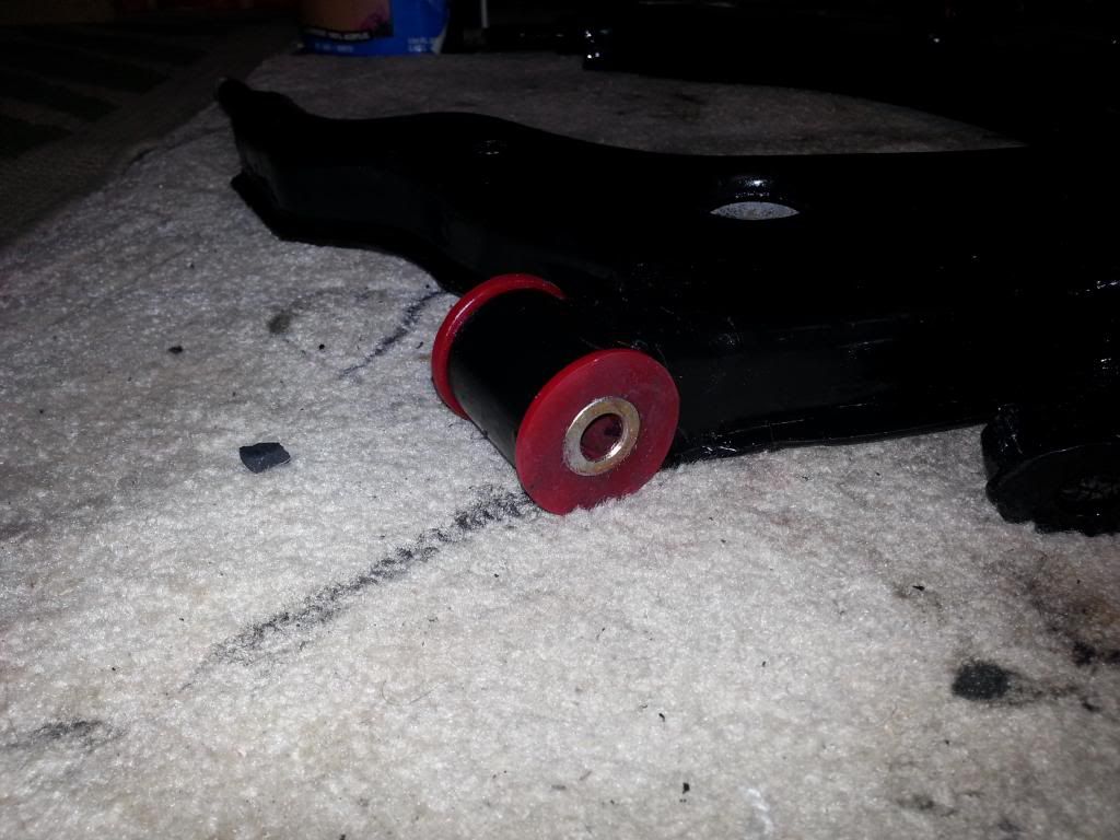 Now just grease up your bushings and slide them into their respected places. The ones closer to the front of the car are smaller than the rearward ones.