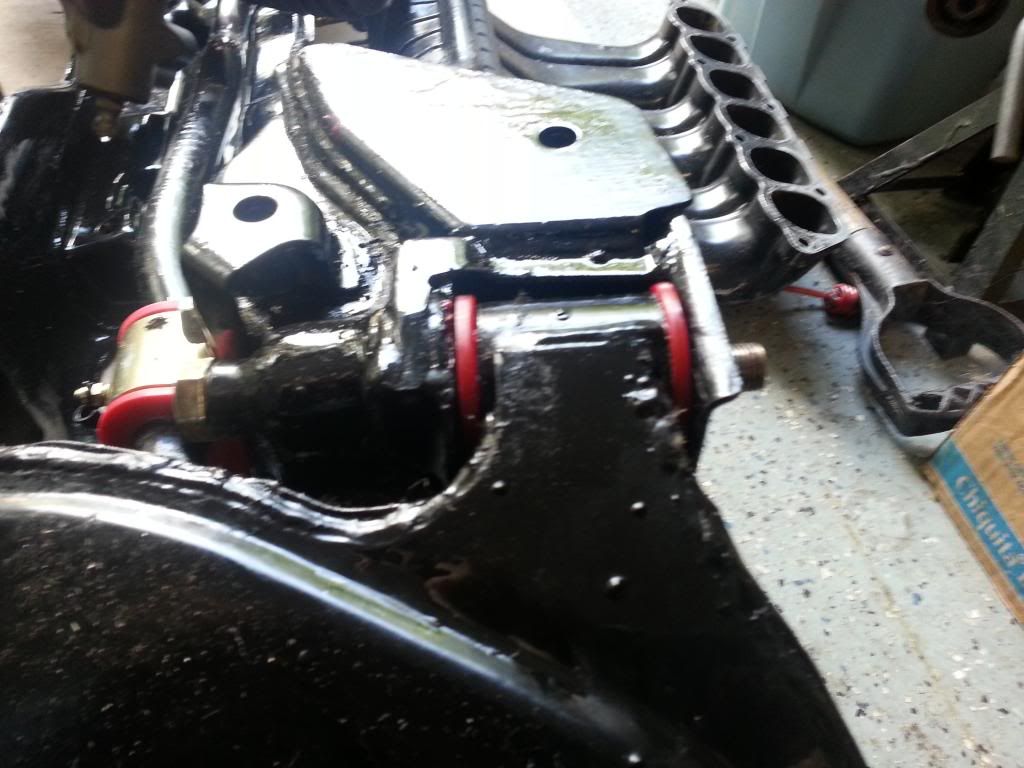 Now The 4 bushings on the sub-frame can be simply hammered out with large punch shaped object and you should end up with something like this but probably Dirtier: