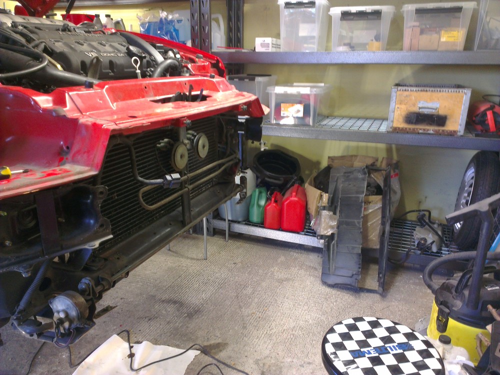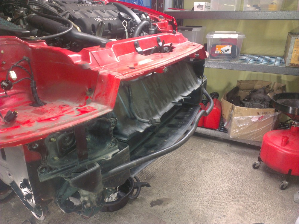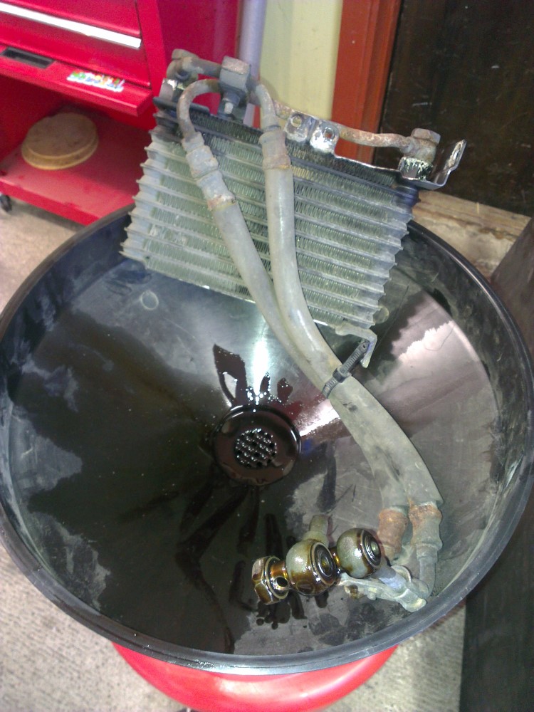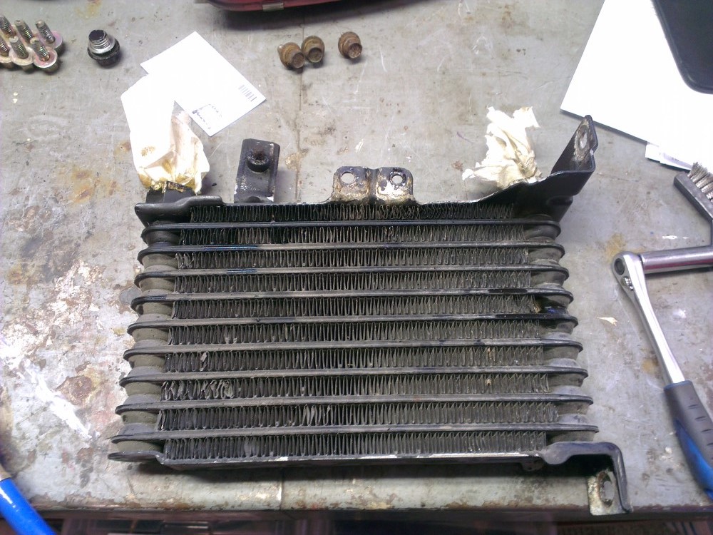 Removed the oil cooler in order to relocate it to the front.