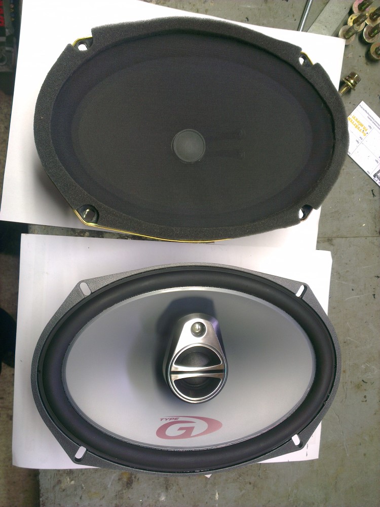 Since the depth is really limited in the stock rear speaker enclosures I took one of the old speaker with me to the local car stereo shop and went through their stock until I found a suitable set that had comparable dimensions.