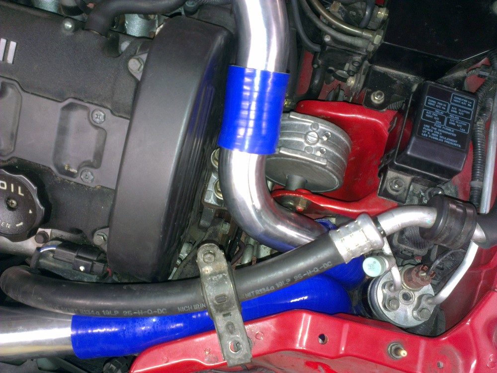 I had been a bit worried on how I would replace the silicon "snorkel" that this kit comes with. But a short 45° bend, a long 60° bend and a short aluminum pipe between them did the trick.