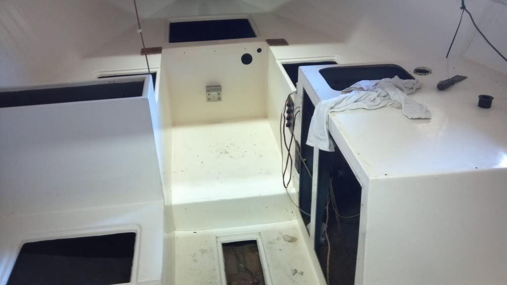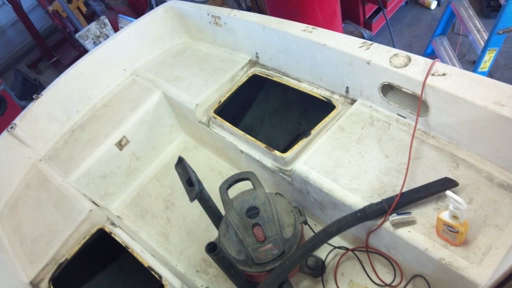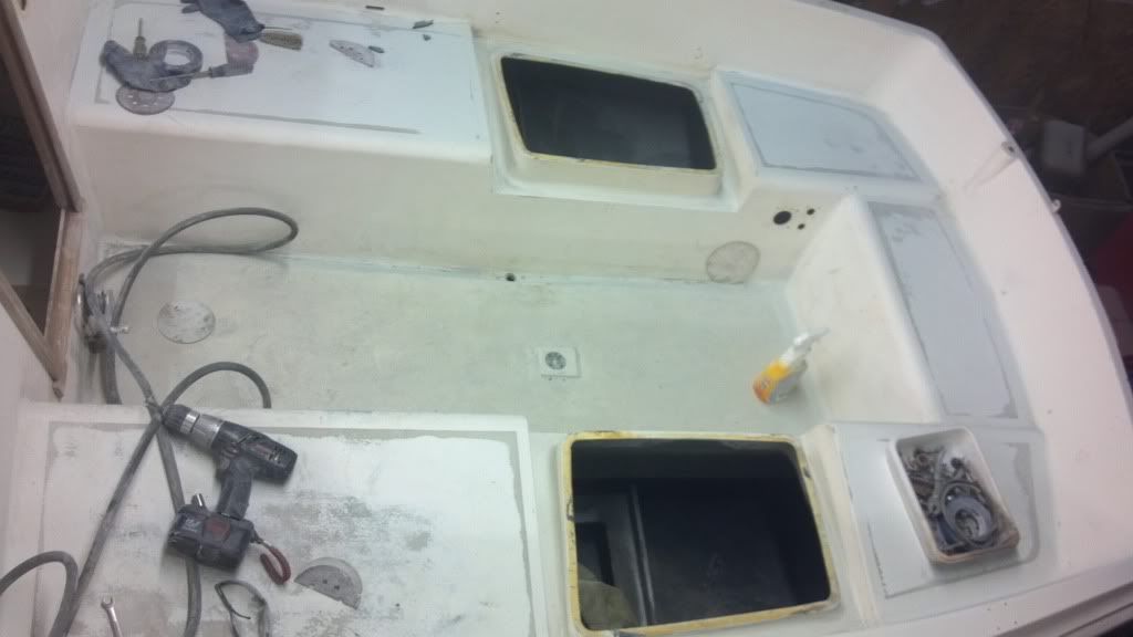 Then I removed the inner wooden supports (I think they are called bulkheads) to refinish. I wanted to get those done and back in before I really walked around on the top. I also bleached the entire inside. I'm going to redo it again when it's all done, but it made a big difference.