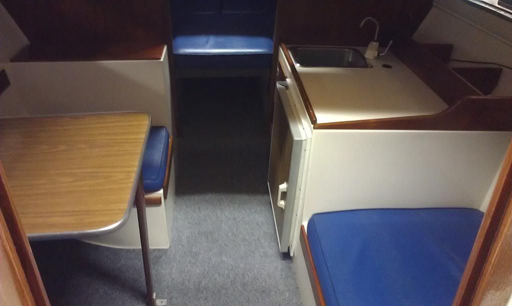 I began with gutting EVERTHING out of it. All the wood trim/metal brackets, cushions, ice box, sink, table etc.. Then I vacuumed/wiped all the lose dirt out of it.