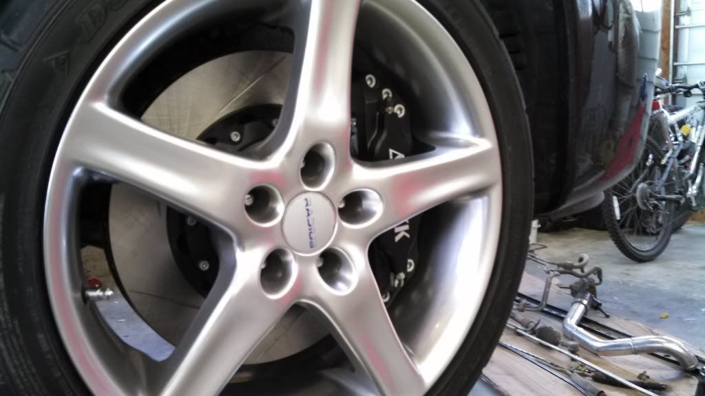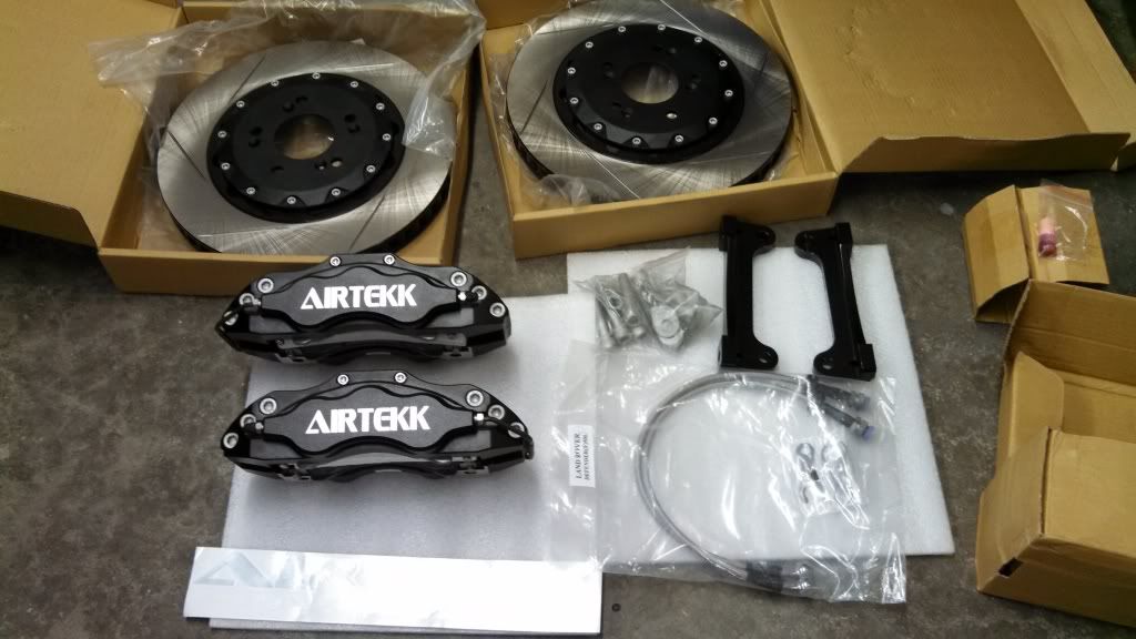 I never got around to posting about my brake kit on this forum. I bought them from Airtekk in LI New York earlier this year. However my Moda R6 rims wouldn't clear the calipers. So the kit sat for a few months while I waited on some backordered rims. Overall I'm very happy with the kit. With my old stock calipers, they didn't feel very solid. Nothing like my Subaru w/ brembos. Even after slotted rotors, stainless lines, new fluids they would take me a while to slow down at the dragstrip. Everytime I really worked them it made me think "my car is a heavy boat." There were 2 turn off lanes at the dragstrip and I could never slow down in time to make the first one.