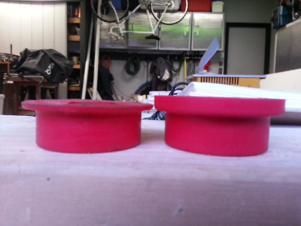 Next, we will need to trim the bushing flange down. For the front 2 bushings I removed about 3/4 of the flange on my bench grinder