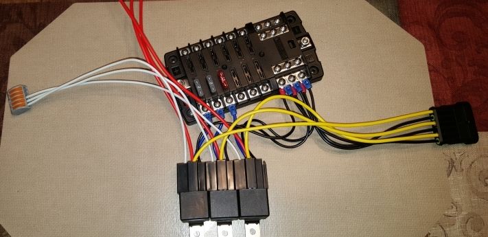 I wired up a Blue Sea Systems fuse block with ground bus for supplying power to various doodads in the center console. I ran a couple wire harnesses with 3 power/3 ground each from the rear hatch area (where the fuse block is located) to the center console.
