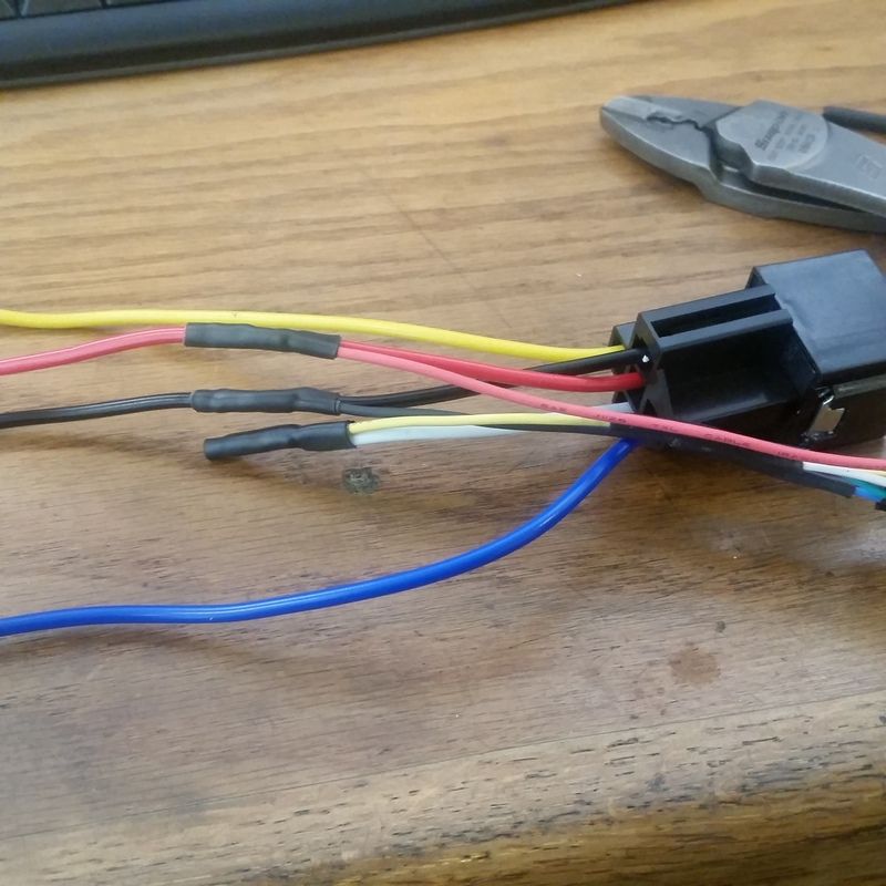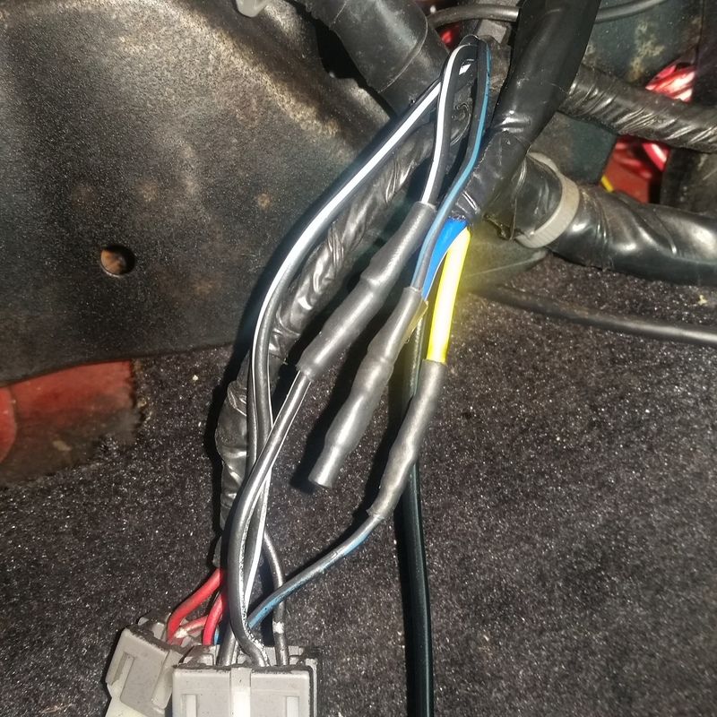 Once you have a neat little three wire device ready to install, you want to 'T' the power in (red wire) to pin 87 of your relay harness, 'T' the black ground wire into the pin 85 wire of your harness, and run the yellow output to pin 86 of your relay. (ignore the fact that 87/87a are reversed in the below pic, I moved it later)