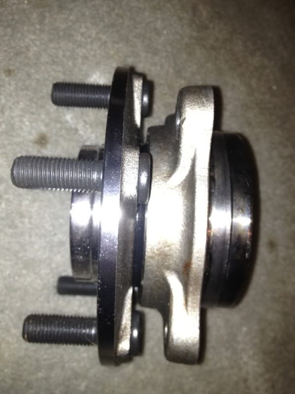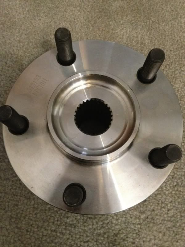 There are no studs to deal with any longer, assuming so this could be a more "universal" part. Bolts come with instead. While the original configuration nutted on at the back of the knuckle, this cofiguration now bolts on through the back of the knuckle to the hub itself, hence they provide a threaded hub and lock washers for them to attach into. No nuts.